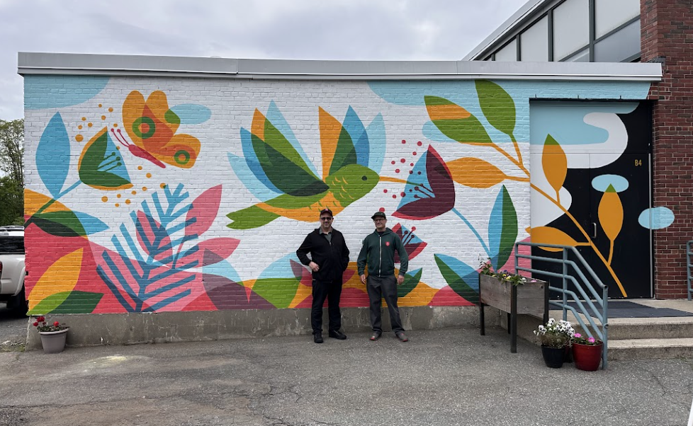 Measuring at 120 feet wide and 40 feet tall, the “MESA” art mural covers the front wall of Mahoney Hall on UMass Lowell’s South Campus. The Boston-based artist created this mural in alignment with the common theme of nature in her art pieces. In reference to the acronym for the Massachusetts Endangered Species Act, “MESA” features several endangered species such as the showy lady’s slipper and blue-spotted salamander.