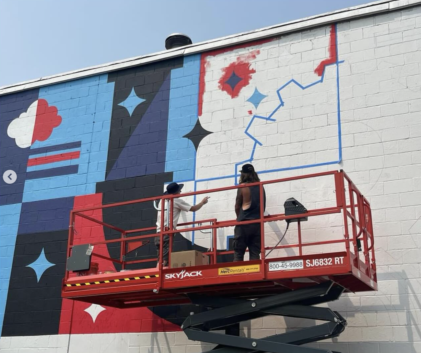 "This mural is inspired by Greek culture since Sophia’s Greek Pantry is full of delicious Greek food and desserts. We wanted to show the history and origin of Greek culture. In the composition, you will find some small details, such as Icarus in the background flying too close to the sun and learning from his mistake, a myth we all showed interest in the rocky road leading from the Medusa section through the rest of the mural is a reference to ancient Greek roads, and many Bougainvillea vines and flowers climbing on the pillars as seen in the Greek island of Santorini."