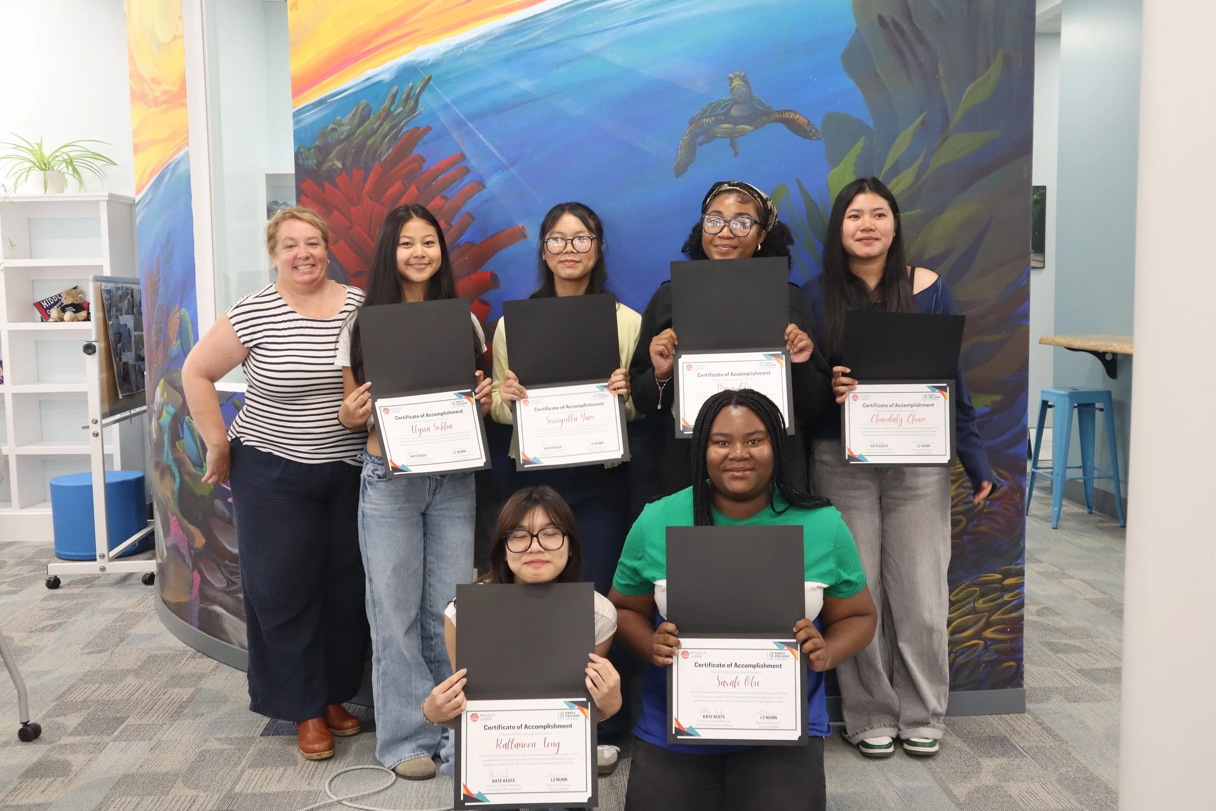 The cybersecurity team, which included Kailyn Vazquez, Daniel Nguyen, Kaleb Tith, Ihor Semenov, and Nabiha Zahee, worked with Cisco System’s Cloud Security System Engineer Shaun Furey to create a course aimed at educating teens on the dangers lurking in cyberspace and how to avoid them.